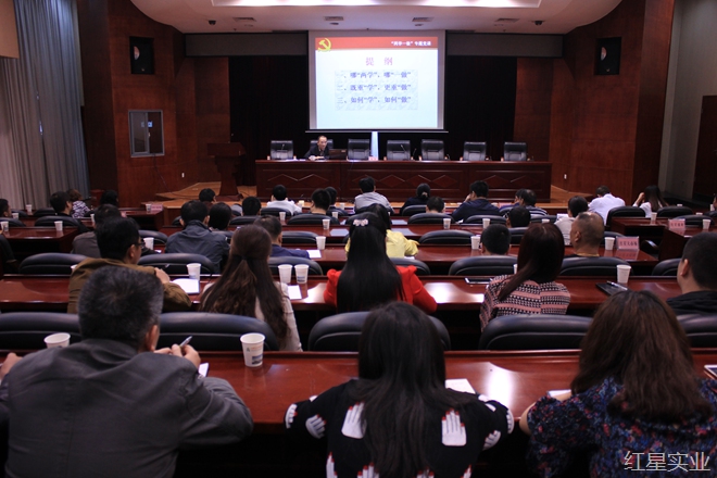 根据上级党委关于“两学一做”学习教育的要求,5月28日上午,红星实业集团在15楼会议室召开“两学一做”学习教育会,邀请中共开福区委党校副校长、高级讲师邹青作专题辅导。集团公司党委、董事会、监事会、总经办成员,司属各企业管委会成员及全体党员、集团机关全体党员、红星村社区班子成员、居民党小组共计150多人参加。会议由集团公司党委书记、董事长罗跃主持。