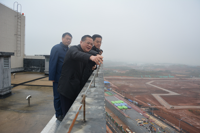 11月24日下午,雨花区委书记张敏一行冒着严寒,专程来到红星全球农批中心,登上一期公寓楼顶俯瞰新市场全貌。区委副书记陈永高,区人大常委会主任、区红星市场迁建工作领导小组组长龚景顺,区委常委、常务副区长、领导小组副组长龚畅,副县级干部、区发改局局长贺芳等领导陪同,跳马镇镇长刘志平,集团党委书记、董事长罗跃,董事张卫强等参加。