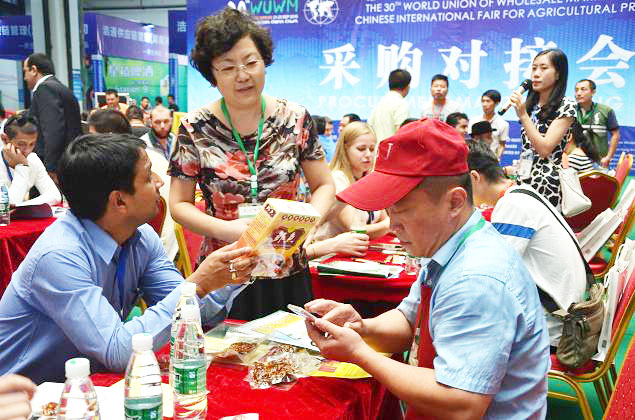 各地客商代表根据对接会上了解到的产品信息,深入展位现场了解产品,洽谈合作。哥斯达黎加、澳大利亚、泰国等9名国外客商到集团公司展示区进行深入采购对接。红星盛康油脂公司和红星农副产品大市场分别向客商推介了公司产品以及农副产品市场购、销情况。