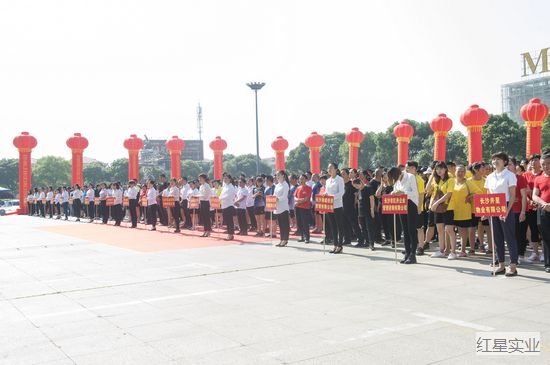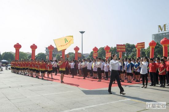 5月18日上午,由雨花区文明办、井湾子街道主办,红星村社区、农博社区和红星实业集团联合承办的第六届“红星杯”文体运动会开幕式在红星国际会展中心南广场隆重举行。区人民政府副区长易静,区未成办主任别必雄,井湾子街道工委书记肖司昊,工委副书记、办事处主任龙峥嵘,红星村社区党委书记胡刚,农博社区党支部书记周静丹,集团党委书记、董事长罗跃等领导出席仪式。各参赛队伍代表、集团总部员工、各子分公司及组级公司居民代表800余人参加开幕式活动。