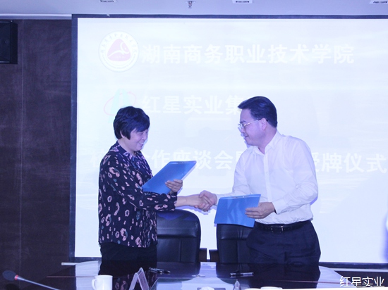 随后,在与会人员的见证下,双方签署了《校企合作战略框架协议》,并交换授牌,湖南商务职业技术学院正式成为“红星实业集团人才孵化基地”,而红星实业集团也成为“湖南商务职业技术学院实习就业基地”,为双方进一步开展多层次、多形式、多领域的合作奠定了坚实基础。