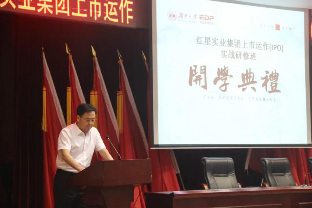 知常明变者赢,守正出新者进。为全面推进上市工作,为红星发展蓄势赋能,5月10日,集团联合湖南大学EDP培训中心举办的上市运作(IPO)实战研修班在公司十五楼报告厅顺利开班。湖南大学工商管理学院党委书记夏树人、EDP培训中心主任李平,集团党委书记、董事长罗跃出席,湖南大学EDP中心项目管理团队及集团91名学员参加。EDP中心班主任陆艳兰主持开班仪式。