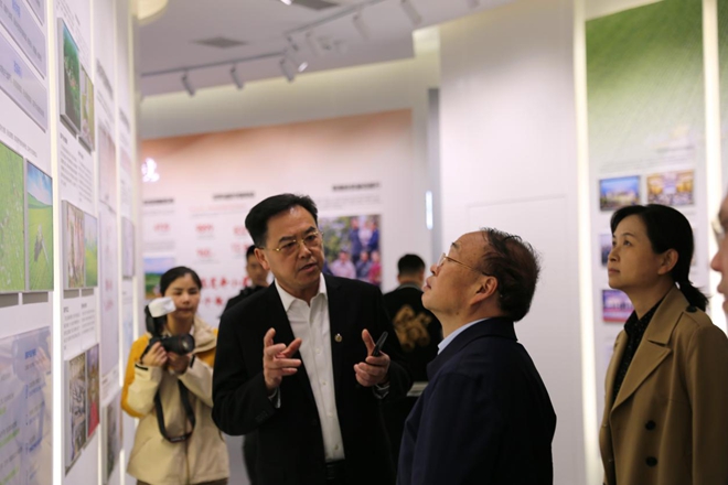罗跃向彭国甫介绍看见农业展厅