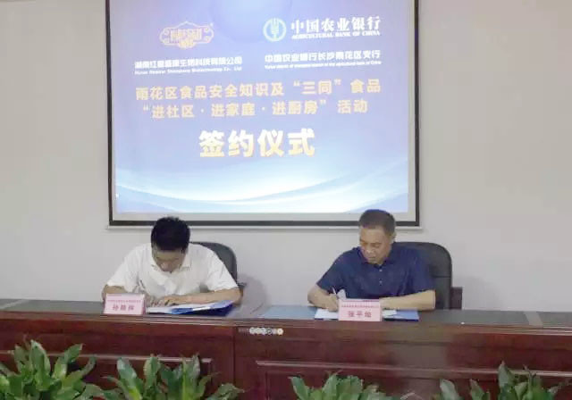 作为惠及民生的一项实事,本次活动得到了中国农业银行长沙雨花区支行的积极支持,双方将合作开展安全、有机、三同食品免费体验活动,将健康送到客户家中。签约仪式的举行,标志着农行金融客户的“财富+健康”行动正式启动,“康御优厨”给金融客户送去健康。