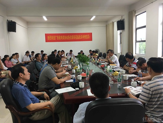 又讯:6月21日下午,广西省肉类协会领导来红星盛业食品有限公司考察指导工作,湖南省肉类协会、公司管委会领导陪同,并就屠宰企业产品质量保障和行业发展等内容召开专题研讨会。会上,许华忠总经理详细介绍了公司基本情况和产品质量管理情况,与会人员围绕屠宰设备、环保排污、税务、用电、产品质量保障和行业发展进行讨论,就两省屠宰行业管理经验进行交流。