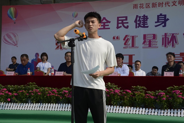 青春洋溢、活力四射的女子花球啦啦操,动感十足、激情奔放的少儿拉丁舞,瞬间点燃全场,拉开活动序幕。文艺表演结束后,各参赛单位整齐列队,高喊响亮口号依次入场,充分展示出新时代“红星人”的健康形象和文明风采。好风凭借力,扬帆正当时。集团罗跃董事长、街道陈建良主任致辞中深切寄语,希望借助“红星杯”广聚民心民智民力,维护区域共同体,助推区域大发展。仪式上,运动员、裁判员代表庄严宣誓,杨平主席郑重宣布“活动开幕!”