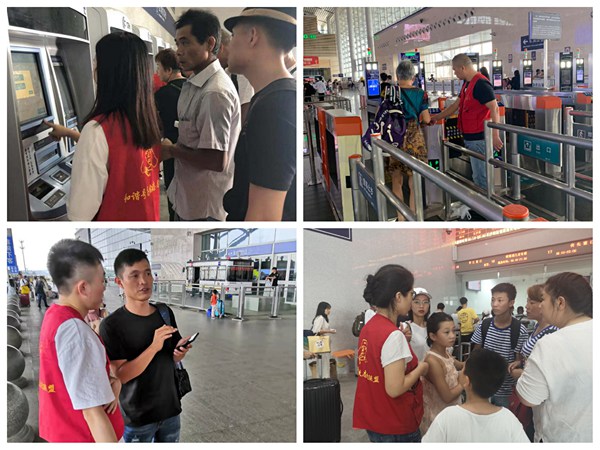 为确保服务质量,切实为广大旅客分忧解愁,“红马甲”们利用简短的岗前培训紧急“充电”,通过一遍又一遍的耐心导引和细心解答提升效能,并用热情与微笑成功化解了出行烦恼和夏日焦躁。落客平台、售票处、进出站大厅、地铁口等点位,“红马甲”与过往旅客因为“需要”“被需要”频频产生交集,构成了奔忙车站内一幅幅和谐友好的画面,让这个酷热暑运多了几分凉意和爱的味道。