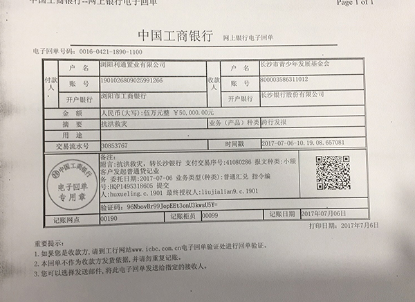黎洪武委员是十四届、十五届人大财经委委员,他历来乐善好施。他带领的利通集团在成立16年的时间里,先后向社会各界捐资捐物近3000万元。这次洪灾中,他捐赠115万元用于救灾和灾后重建,用行动诠释为民情怀。7月4日,向浏阳市慈善会捐赠60万元;7月5日,向集里街道办事处捐建五栋房子(每栋建安成本10万左右),小计50万元;7月6日,向长沙市青少年发展基金会捐赠5万元,用于宁乡县洪灾救灾。
