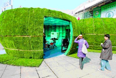由草皮铺出的“绿屋子”在农博会展会现场吸引了不少市民的目光。