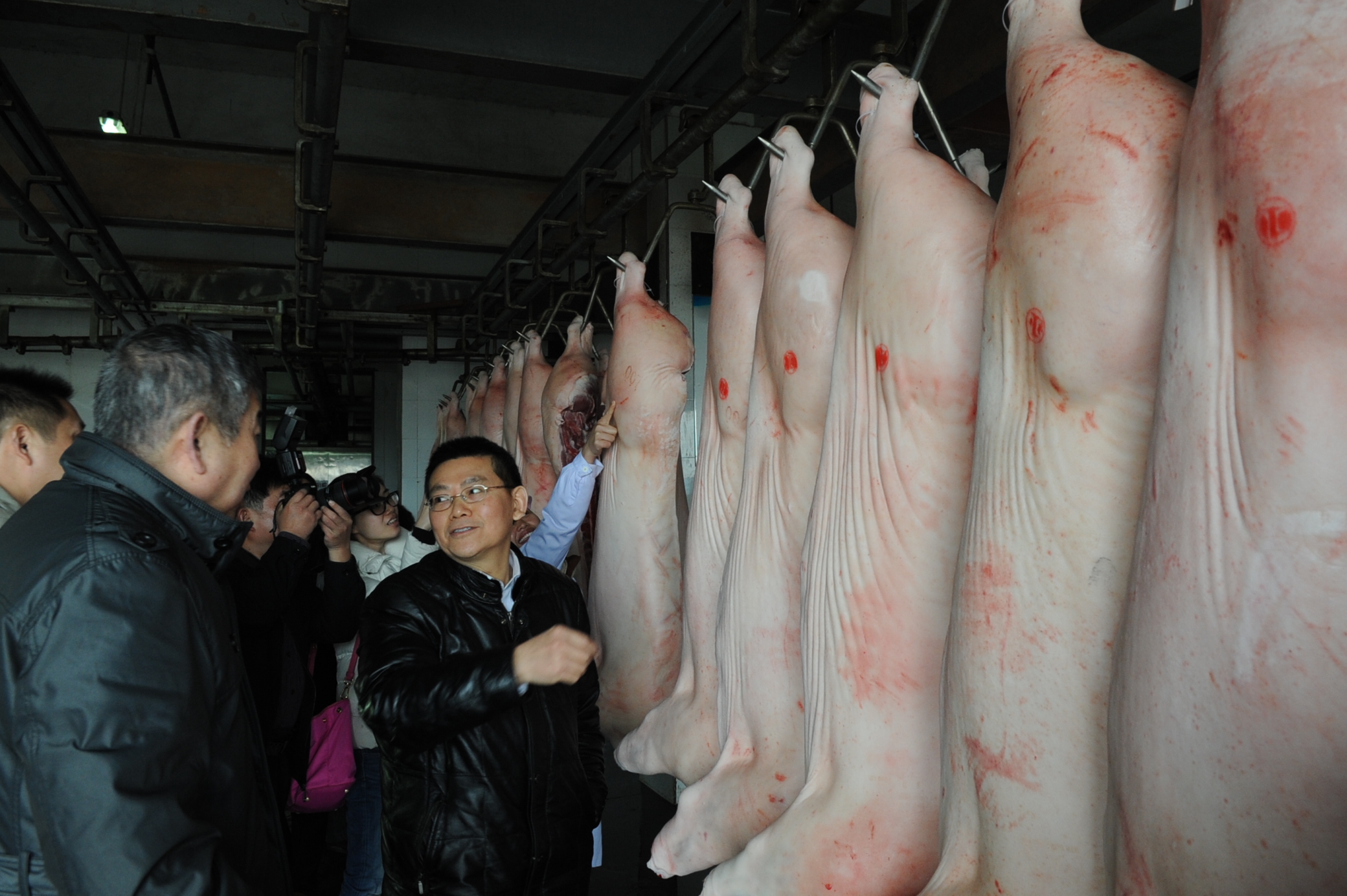 仪式结束后,各参会单位在湖南红星盛业食品股份有限公司屠宰场现场实地观摩了激光灼刻技术的应用情况,新闻媒体对相关企业代表进行了采访。